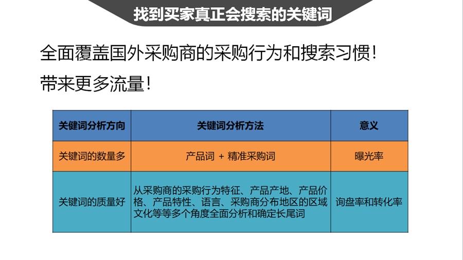 3, keyword selection should be combined with data analysis, such as the customer's export market statement and customer local call, etc.